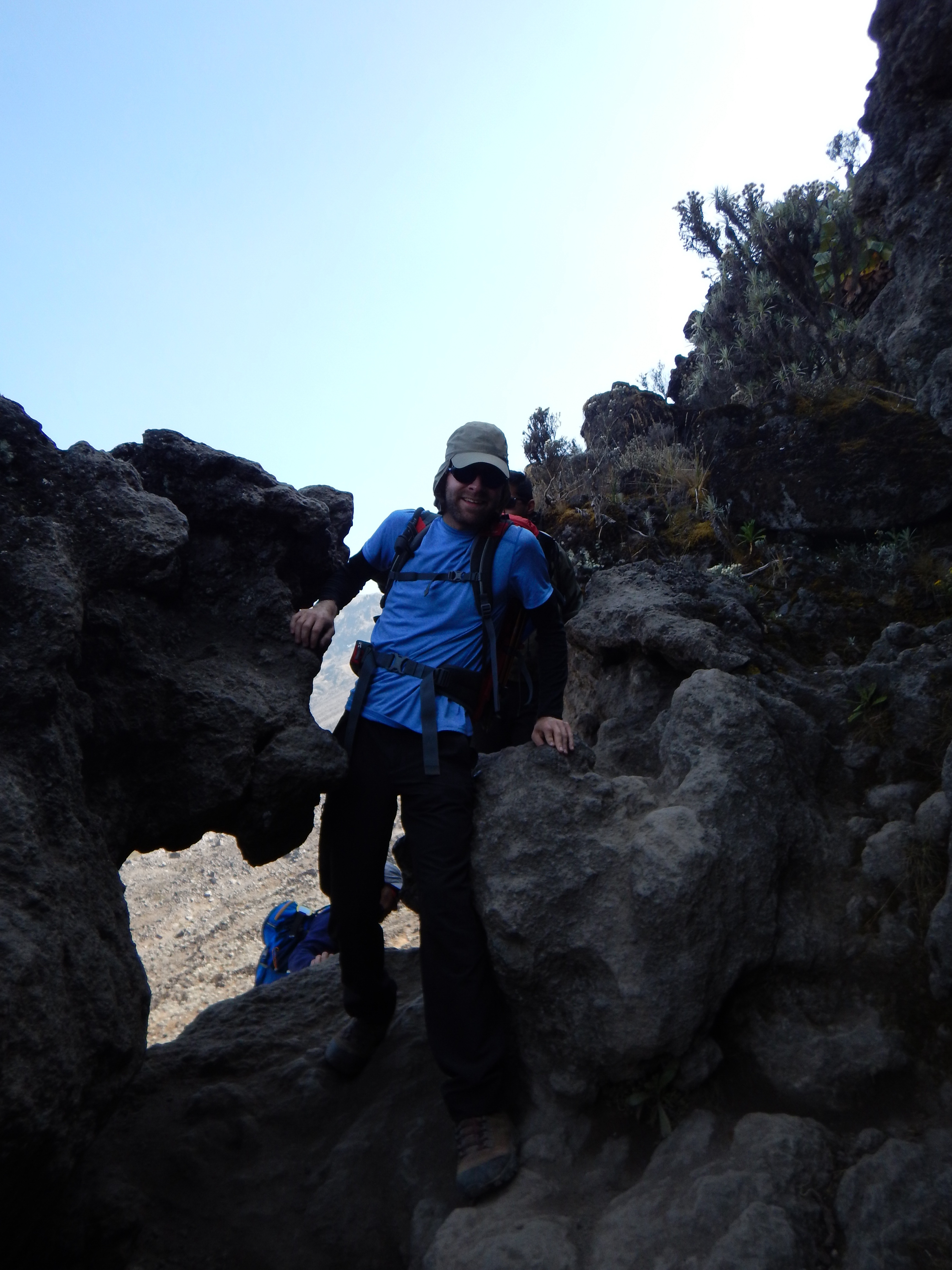 9am rolled around and were finally ready for the hike to begin. Of all the days, this one is said to be one of the more ‘technical’ climbs. For example, we had to climb around ‘kissing rock’ which you pretty much have to kiss and hug to keep from falling down the cliff a little way. We also had to do some scrambling up the mountain, getting down and dirty on our hands climbing up some sections and squeezing through others. For these reasons, today was one of my favorite uphill hiking sections.