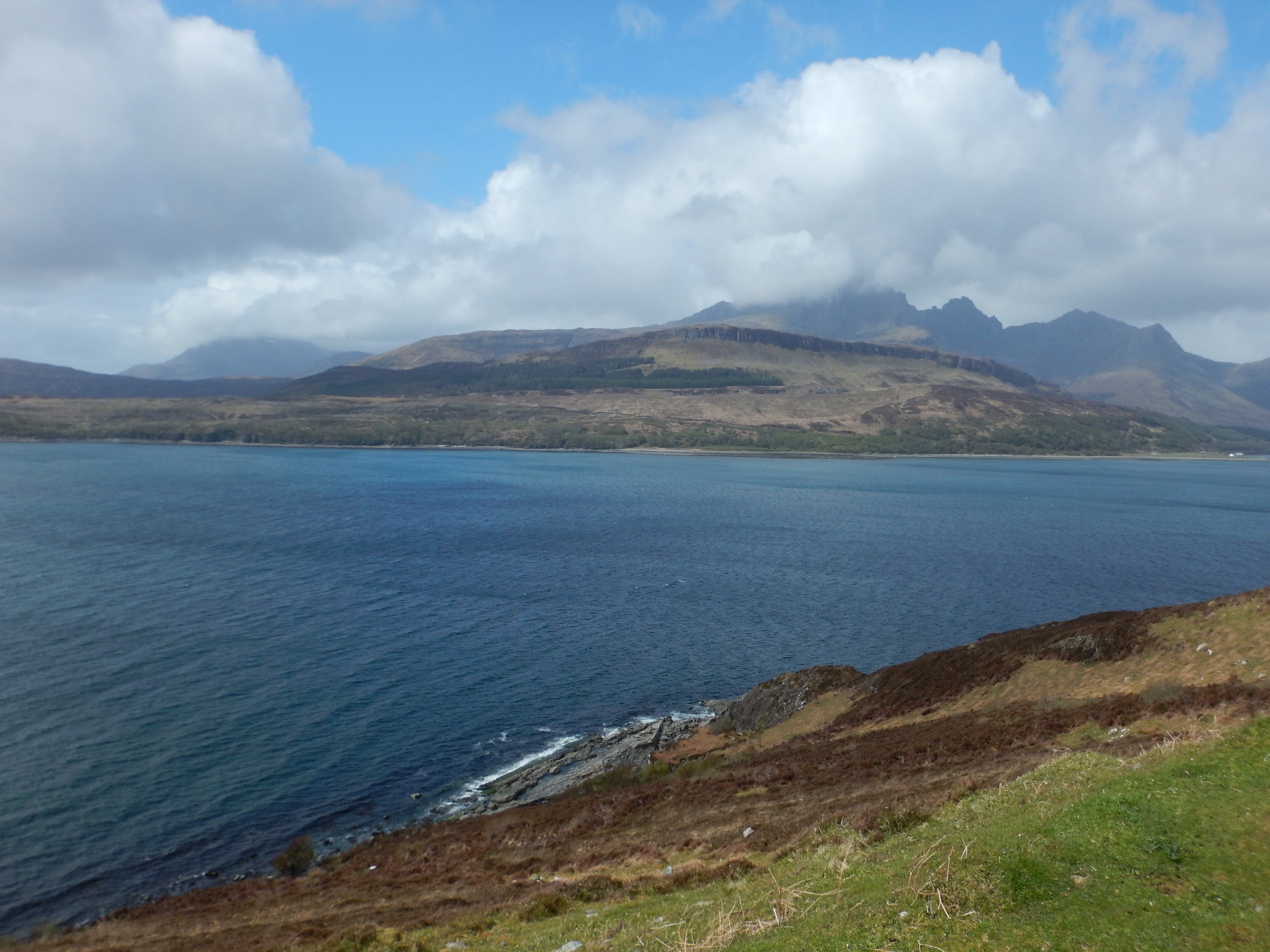 This was a 14km (8.5mi) hike making a loop along the Strathaird Peninsula. Lasting 6 hours, the climbs were mild and short and the views along the coast were fantastic. It was supposed to be a really windy, rainy, bleak day with scattered thunderstorms but instead we ended up having great weather. With the occasional rains and winds blowing through, the sun ended up shining for a lot of the hike.