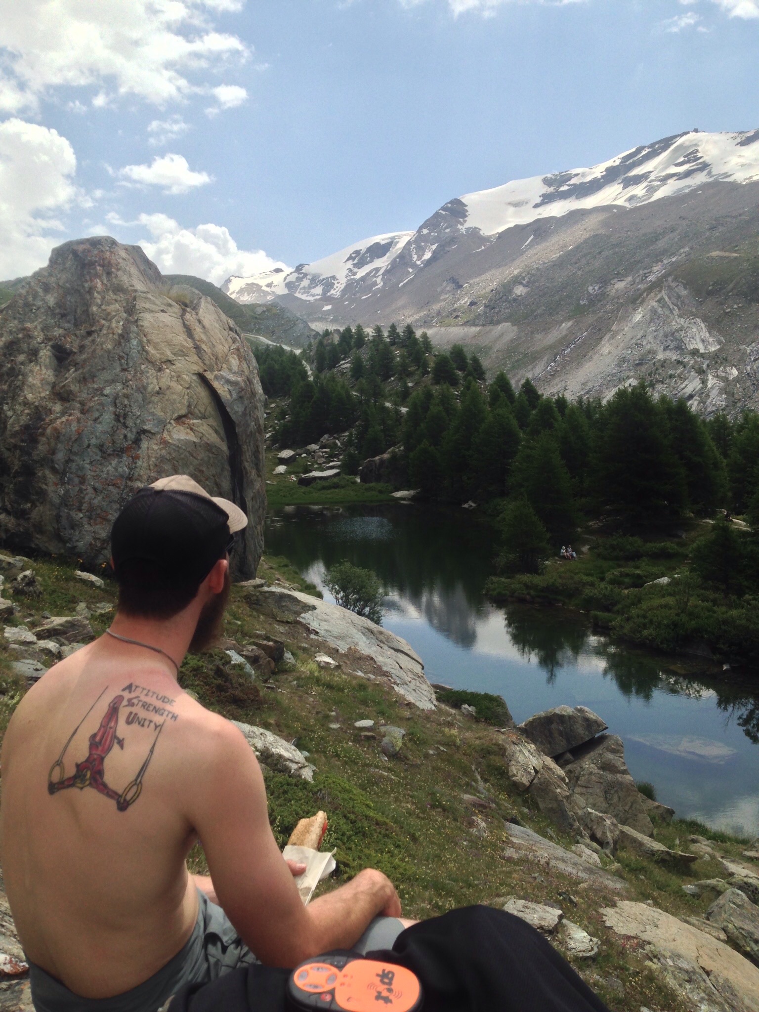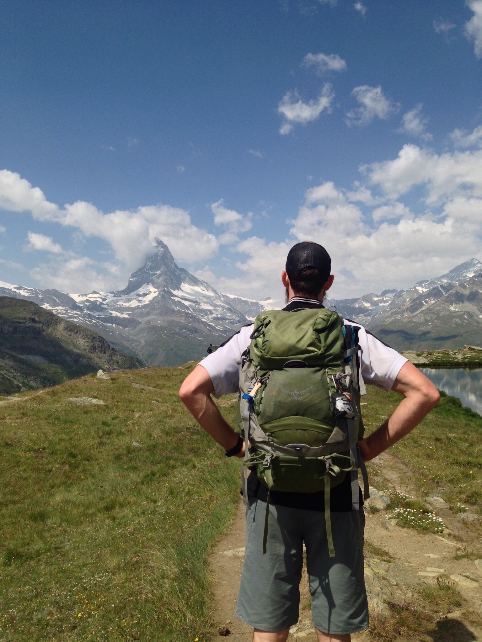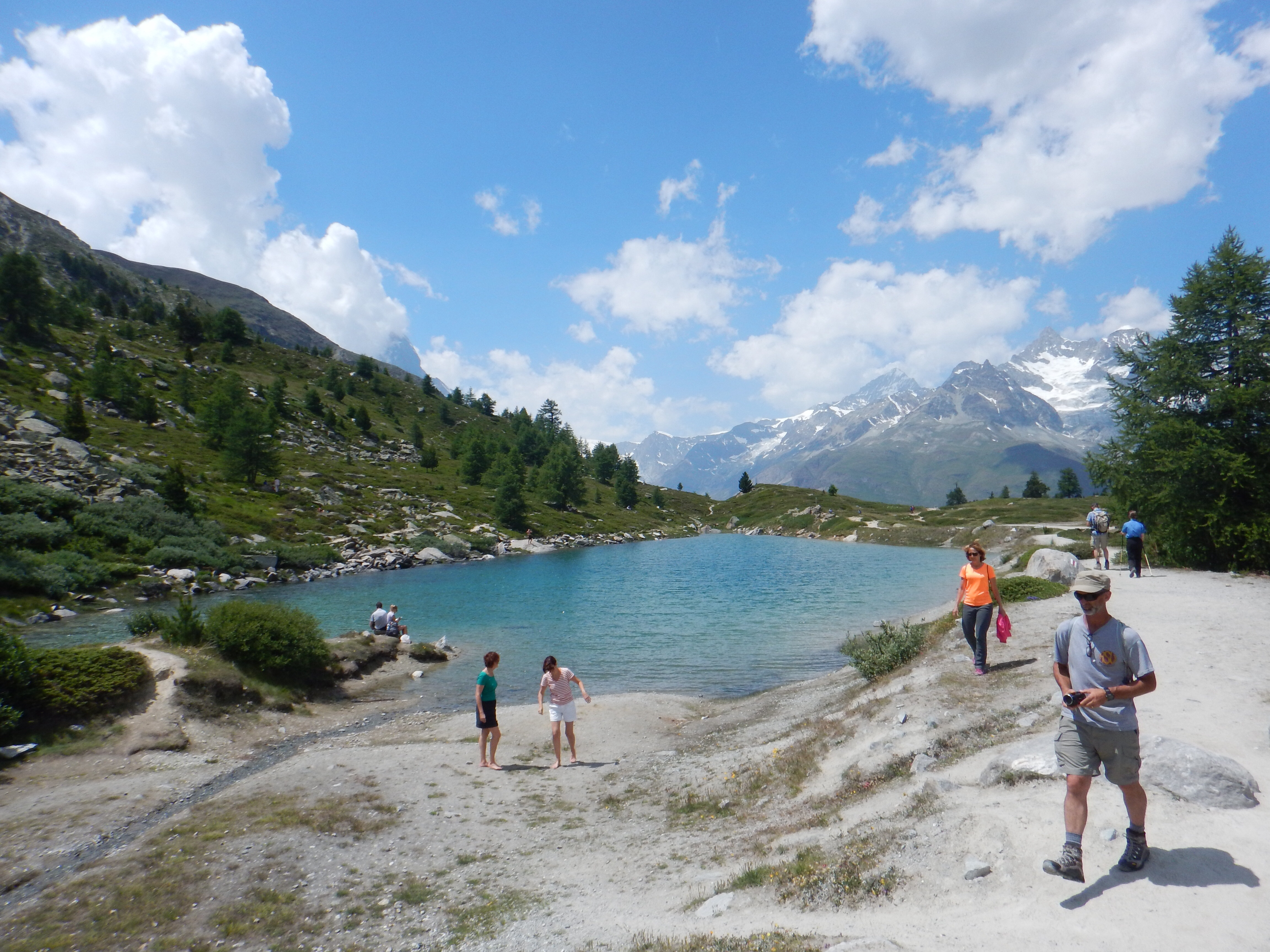 My personal favorite, Grunsee, the next lake on the list. This is the spot to go for a swim! What a treat it was to swim in a nice, refreshing, and cool alps lake while looking at the Matterhorn. There are also several places to lay out on a rock here or find some shade under the trees.