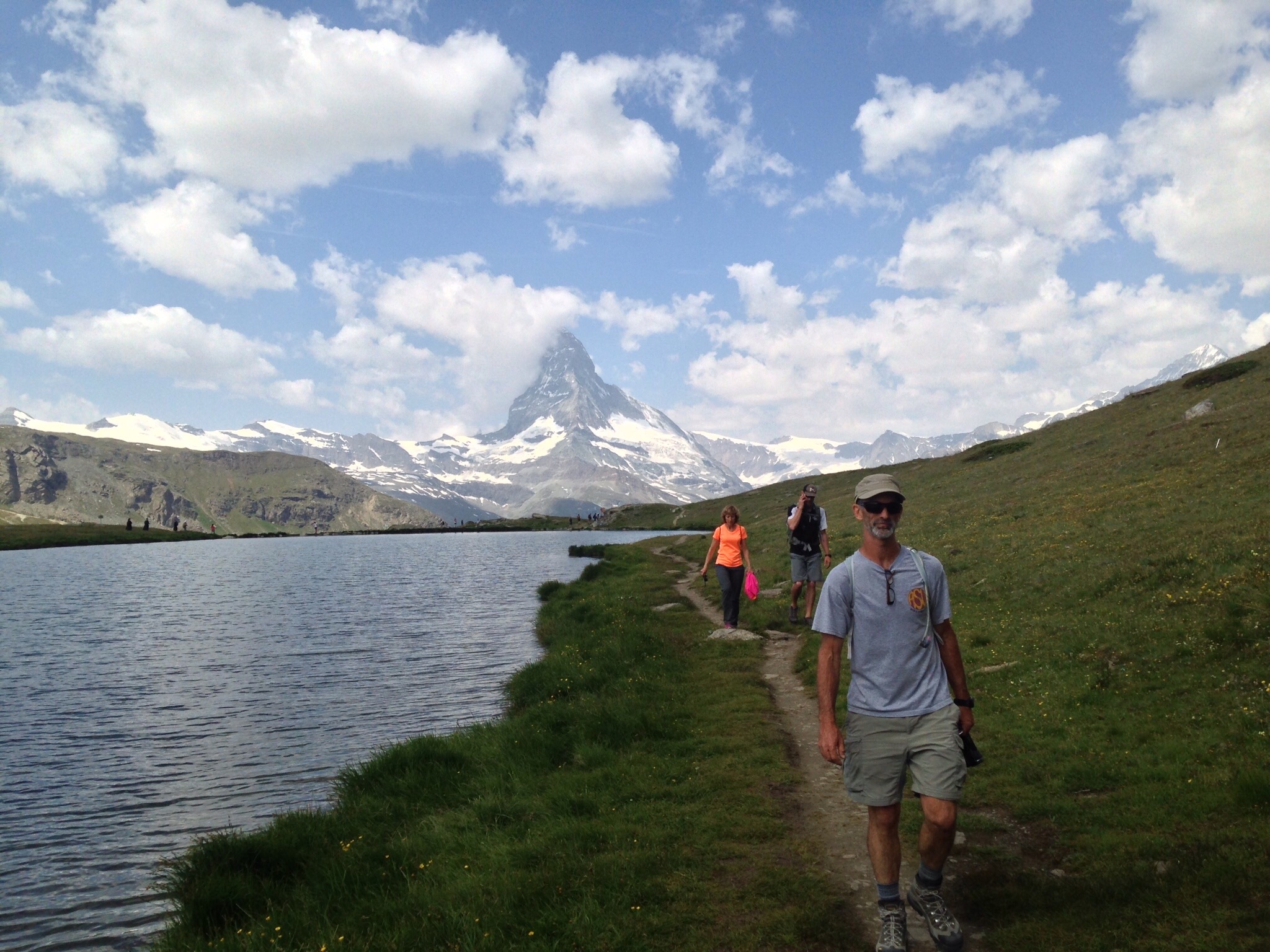 Hiking on down, the next lake is Grindjisee. There are some good shaded spots here to sit and relax while soaking in the scenery of the beautiful surrounding Alps Mountains. The view of the Matterhorn is outstanding and is always changing throughout the duration of the walk.